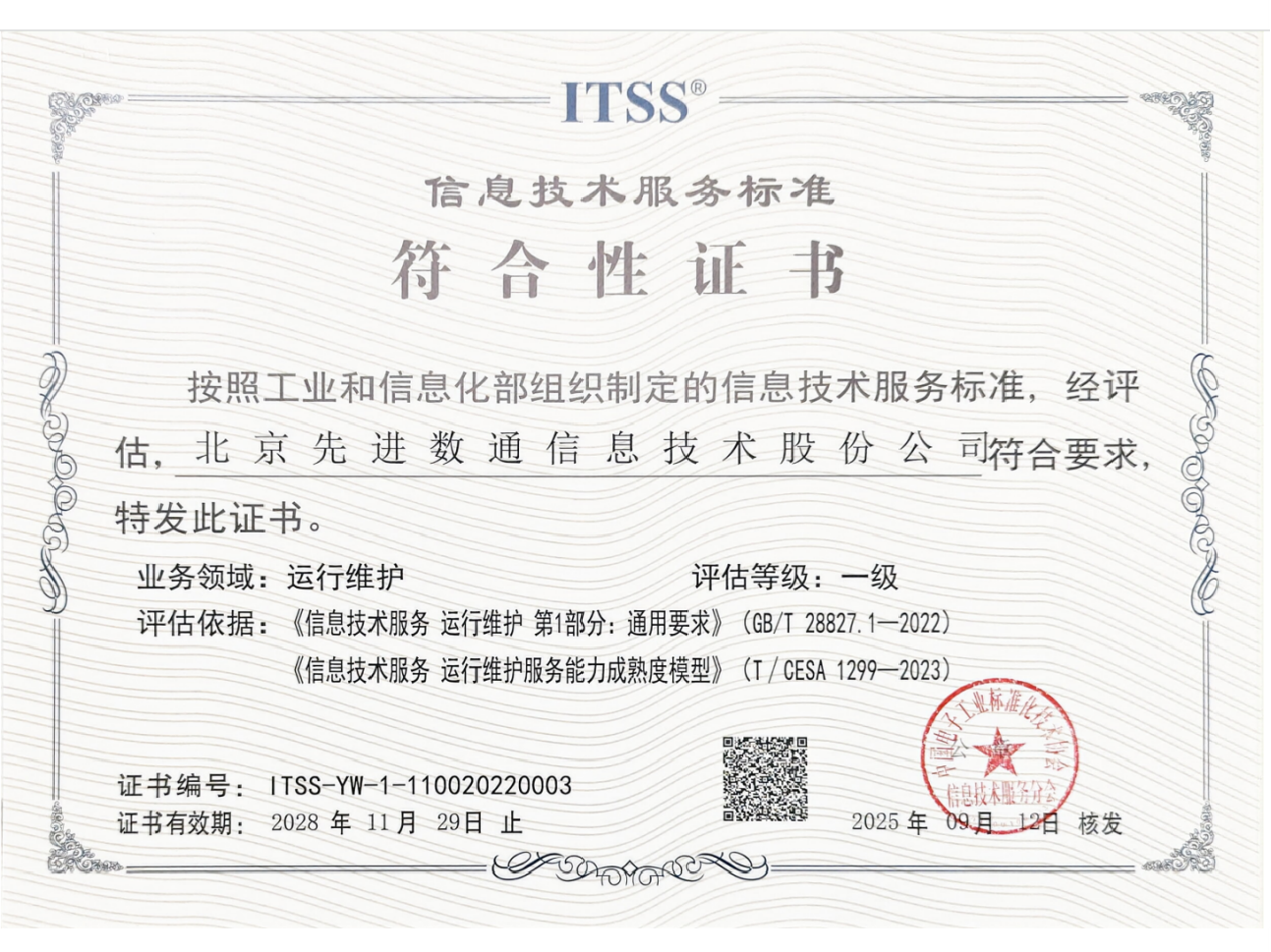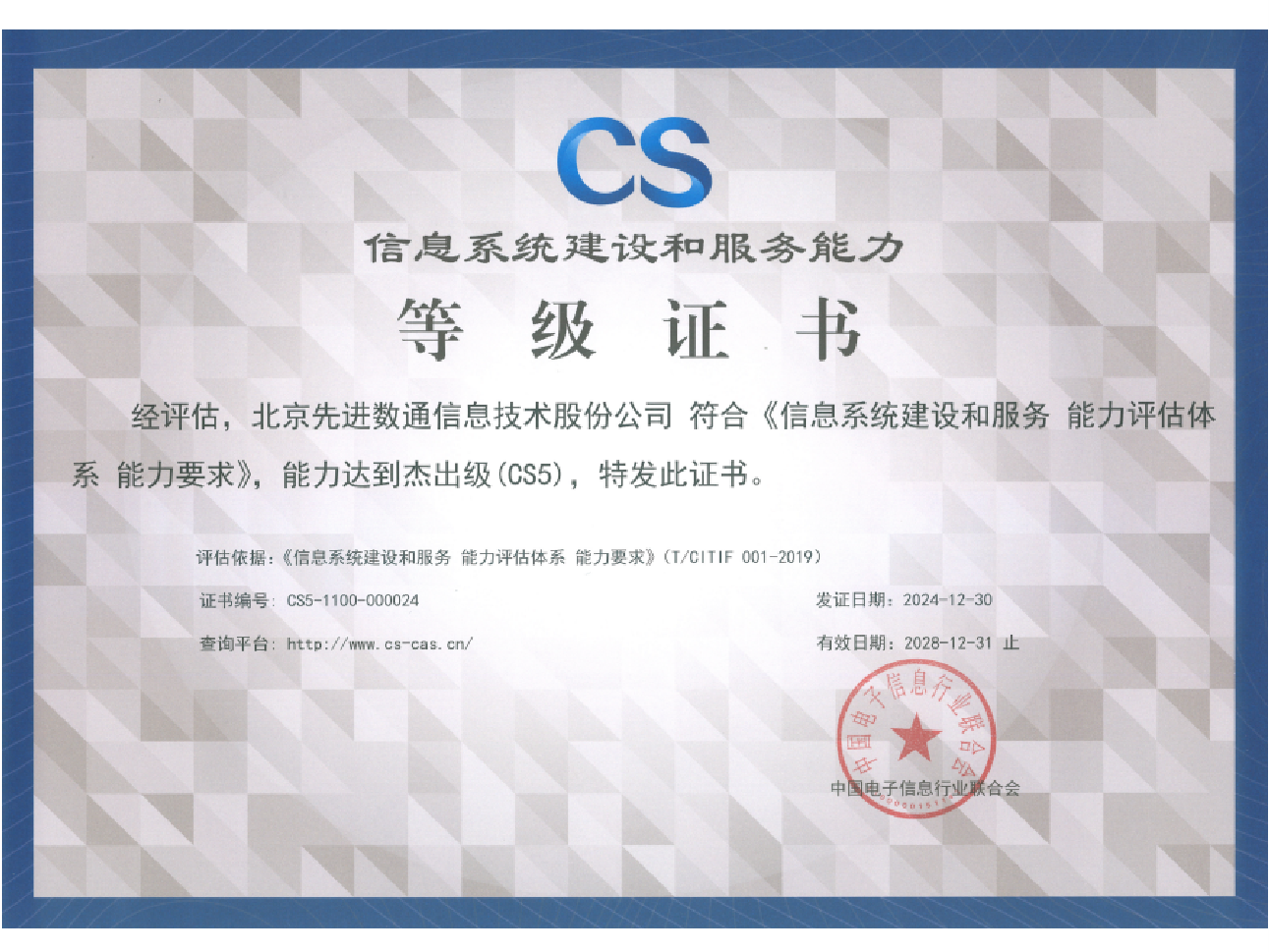 k8凯发先后取得CMMIL5、软件能力成熟度五级(SPCA 5)、信息系统建设和服务能力评估体系(CS)5级、ITSS成熟度一级、信息系统安全集成服务资质二级、信息系统安全运维服务资质二级、国产化信息系统集成和服务能力评估四级(LS4)、北京市企业技术中心等资质认证,并取得ISO9001、ISO20000、ISO27001、ISO14001、ISO45001、ISO22301、ISO37001、ISO28001、GBT29490等标准体系认证,具备行业领先的技术开发、工程实施及服务保障能力。