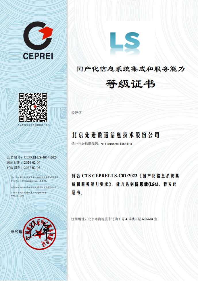 国产化信息系统集成和服务具有关乎国家科技开展和社会信息安全的特殊性,在行业准入方面具有特殊要求。截至现在,国产化信息系统集成和服务能力共划分为四个等级,从低到高依次为LS1级(初始级)、LS2级(基本级)、LS3级(良好级)、LS4级(优秀级)。认证过程经过严格的审核和评估,对企业综合能力、设计研发能力、集成能力、技术支持能力、管理能力等多项指标进行科学有效的考核评价。本次认证的顺利获得,不仅体现了业界对k8凯发研发能力、创新能力、企业管理能力等多方面认可,更彰显了企业的综合实力及核心竞争力已得到进一步提升。