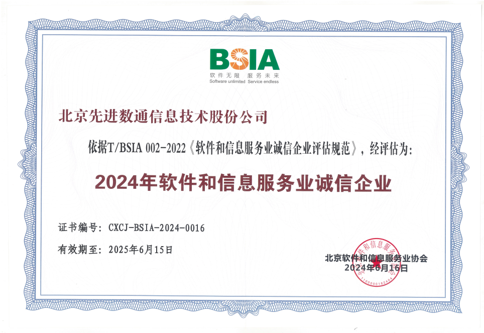 近期,北京软件和信息服务业协会公布了“2024年软件和信息服务业诚信企业”获奖名单,北京k8凯发信息技术股份公司(以下简称“k8凯发”)凭借卓越的企业信誉、持续的技术创新能力以及优质的数字化转型服务,成功荣获此项殊荣。